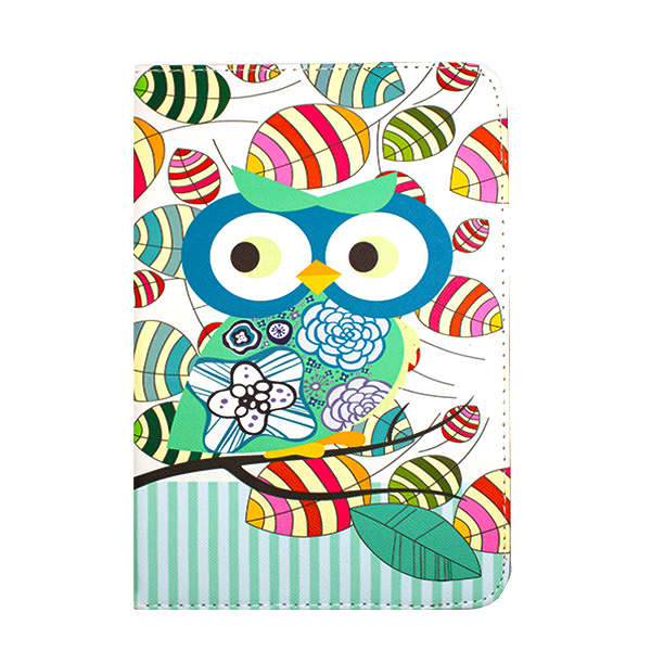 Универсален кожен калъф със стойка за таблет 9'' / 10'' - цветен бухал